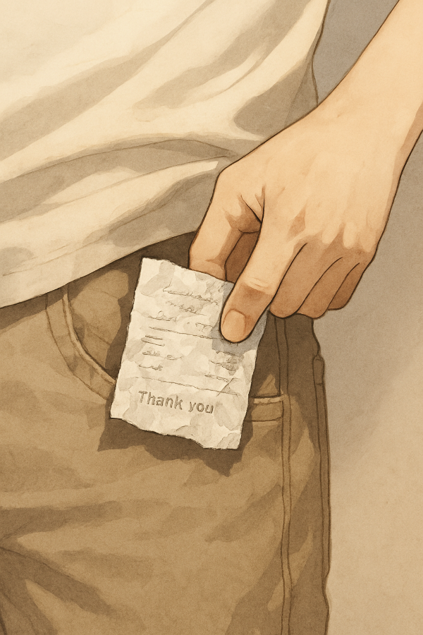 구겨져서 반쯤 찢어진 영수증. 묵은 잉크 냄새와 손때가 섞인 그 종이엔