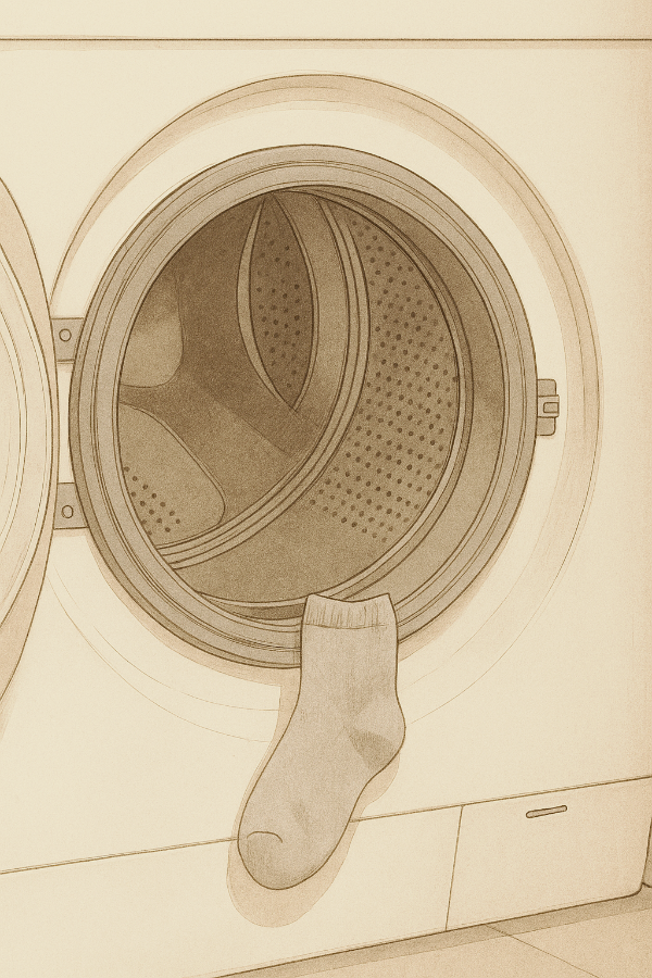 세탁기 문을 닫기 직전, 안쪽 구석에 웅크린 회색 양말 하나가 눈에 들어왔다.